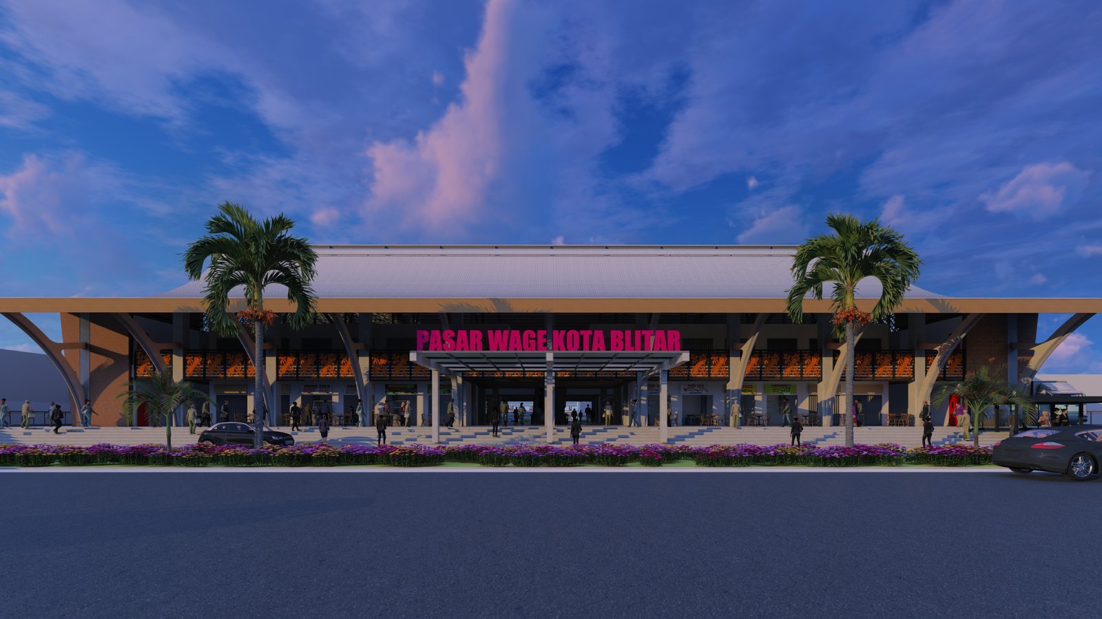 Bentuk bangunan pasar terinspirasi dari siluet rumah tradisional Jawa yaitu rumah limasan. Atap rumah limasan yang terdiri dari beberapa bagian disederhanakan dengan membuat 1 masa melengkung dengan tetap mempertahankan siluetnya. Puspa Dahana yang merupakan elemen khas Kota Blitar ditambahkan pada gewel bangunan.